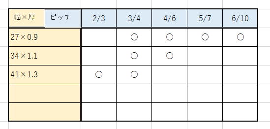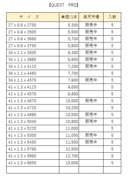 【Quest PRO 】 ブレードcoil 在庫状況 ※ 日々変化します ご注文に応じて、機種寸法に仕上げていきます ![]() 楽天市場でも販売中、EC販売の方が安い場合もあります。要チェック 「価格表」 消費税別途 「送料無料 離島除く」 ![]() 沖縄離島以外送料無料 ※ ピッチとは、1インチ(25.4mm)中の歯数をいいます。 表に無い長さもすぐ作ります、お気軽にお問合せ下さい |