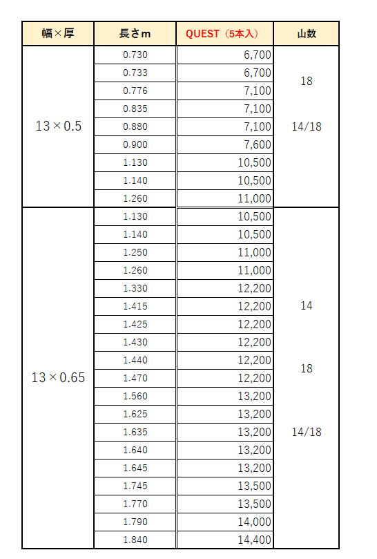 特殊な長さもすぐに製作出来ます。